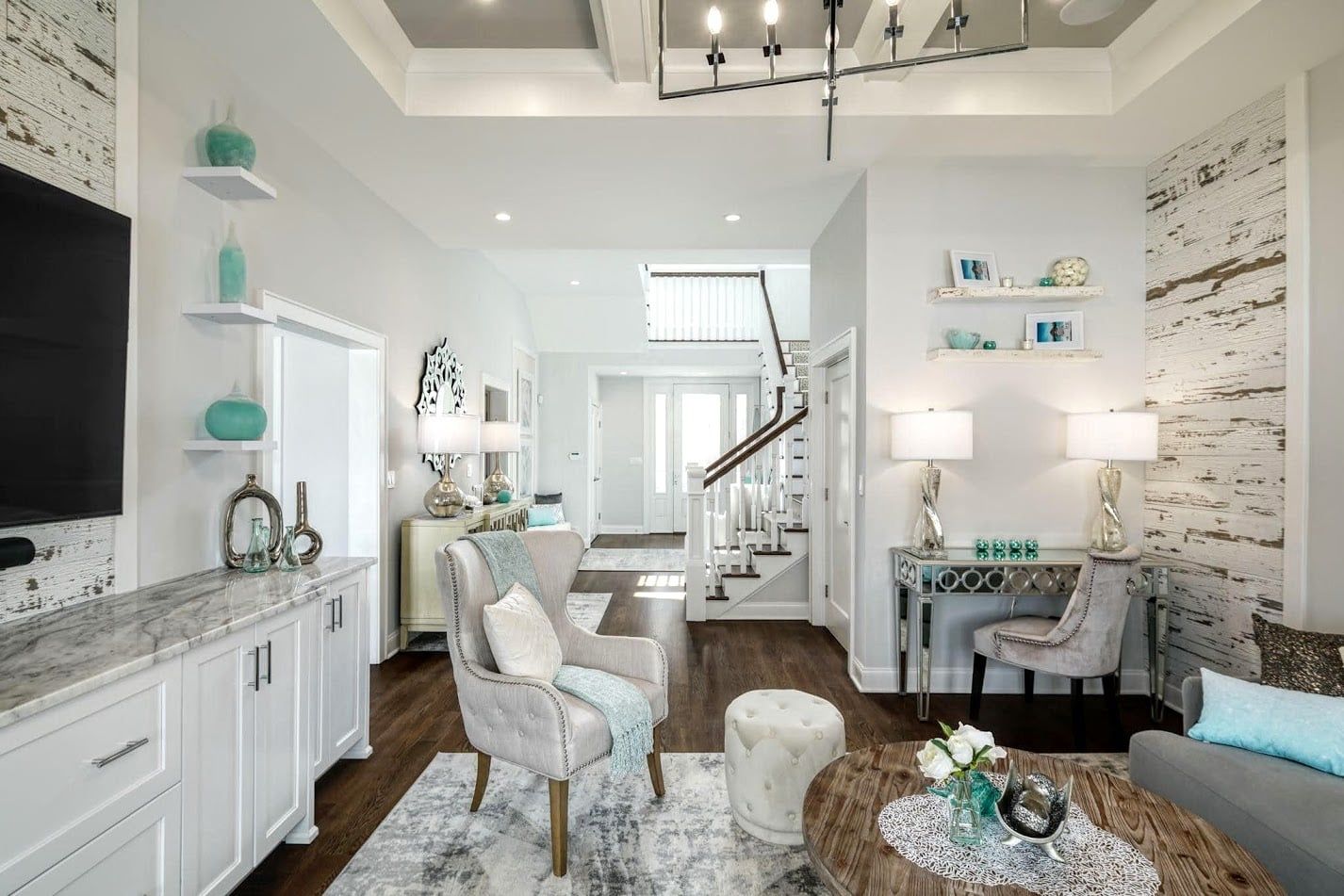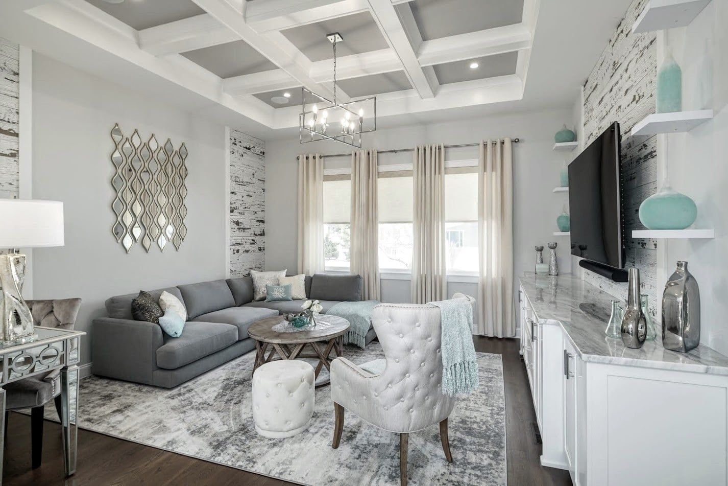 You'll be sitting comfortable, while your guests are wide-eyed and speechless taking in the grandeur of your new living room. Bold and beautiful, this room owns its beauty.